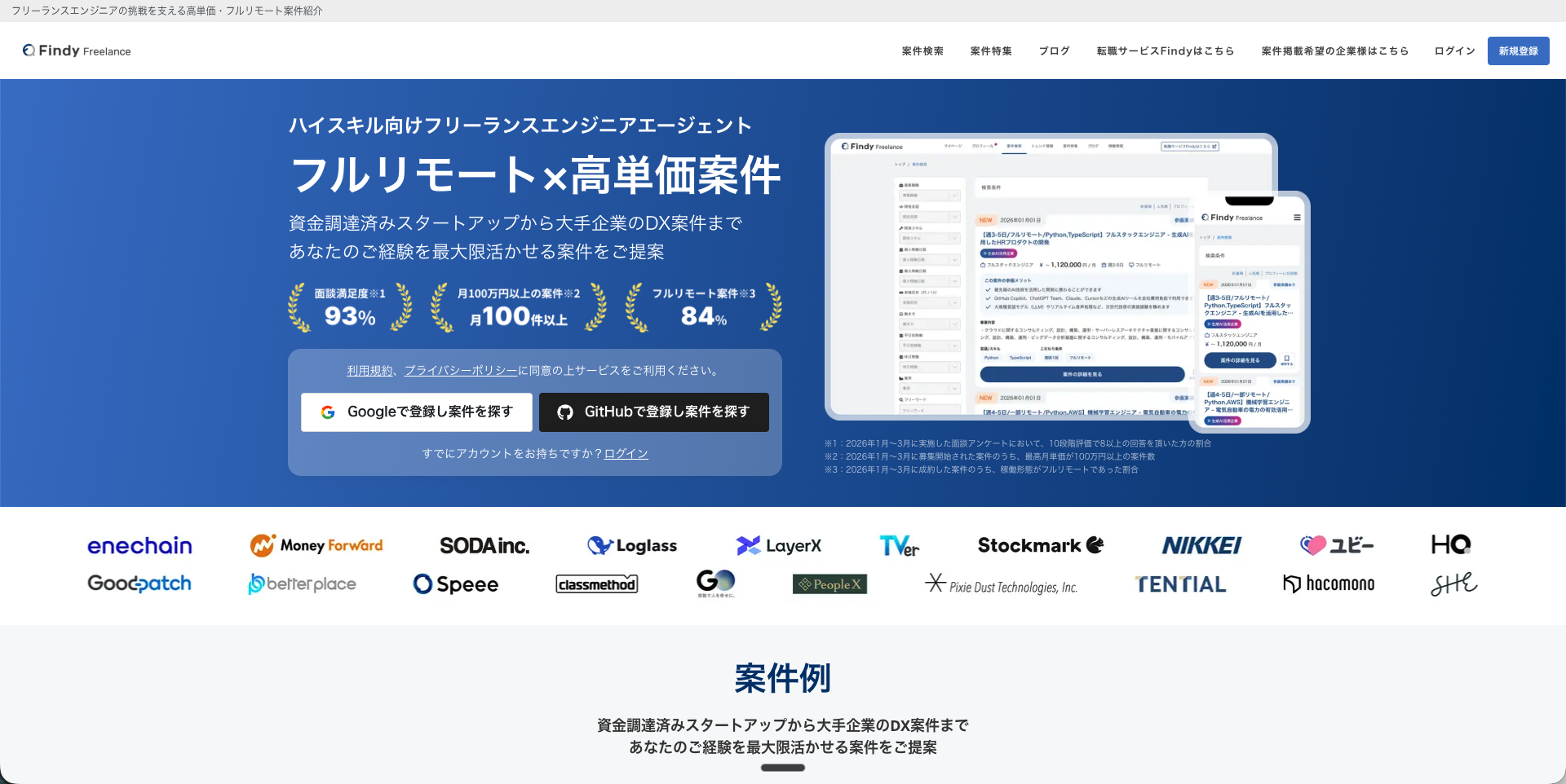 Findy Freelanceは、ファインディ株式会社が運営するハイスキルエンジニア向けの審査制エージェント。レバテックとは正反対に「数より質」を徹底している立ち位置です。