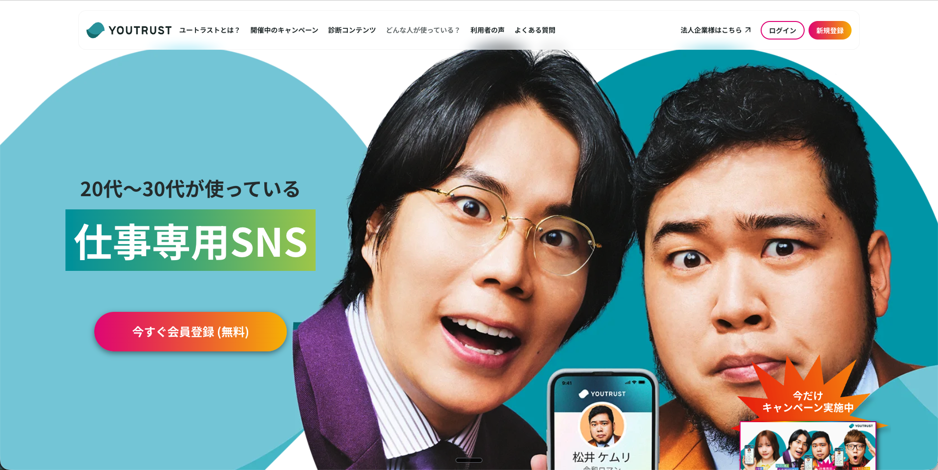 YOUTRUSTは、株式会社YOUTRUSTが運営する「仕事専用SNS。従来のエージェントとは設計思想がまったく異なり、知人・知人の知人経由でオファーが届くリファラル型のサービスです。