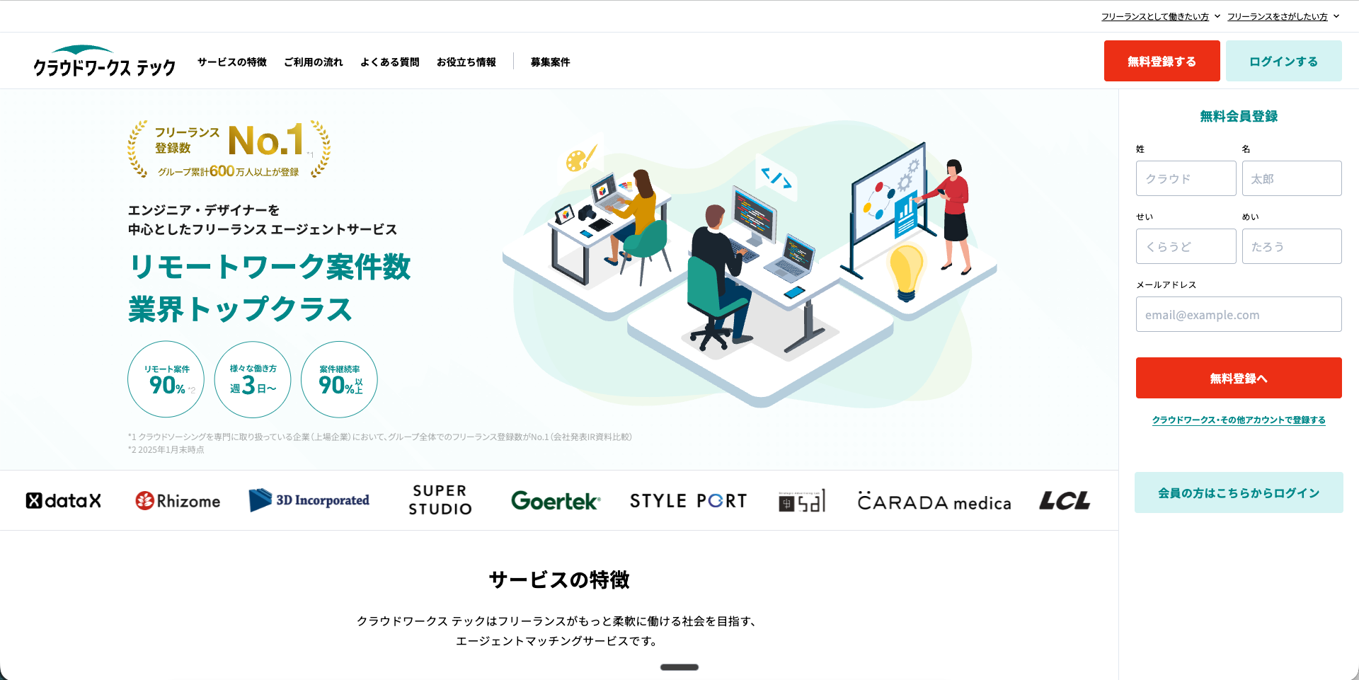 - リモート可能案件が全体の約97%(調査時点)と業界トップクラス。完全在宅で働きたい人に向く設計です。